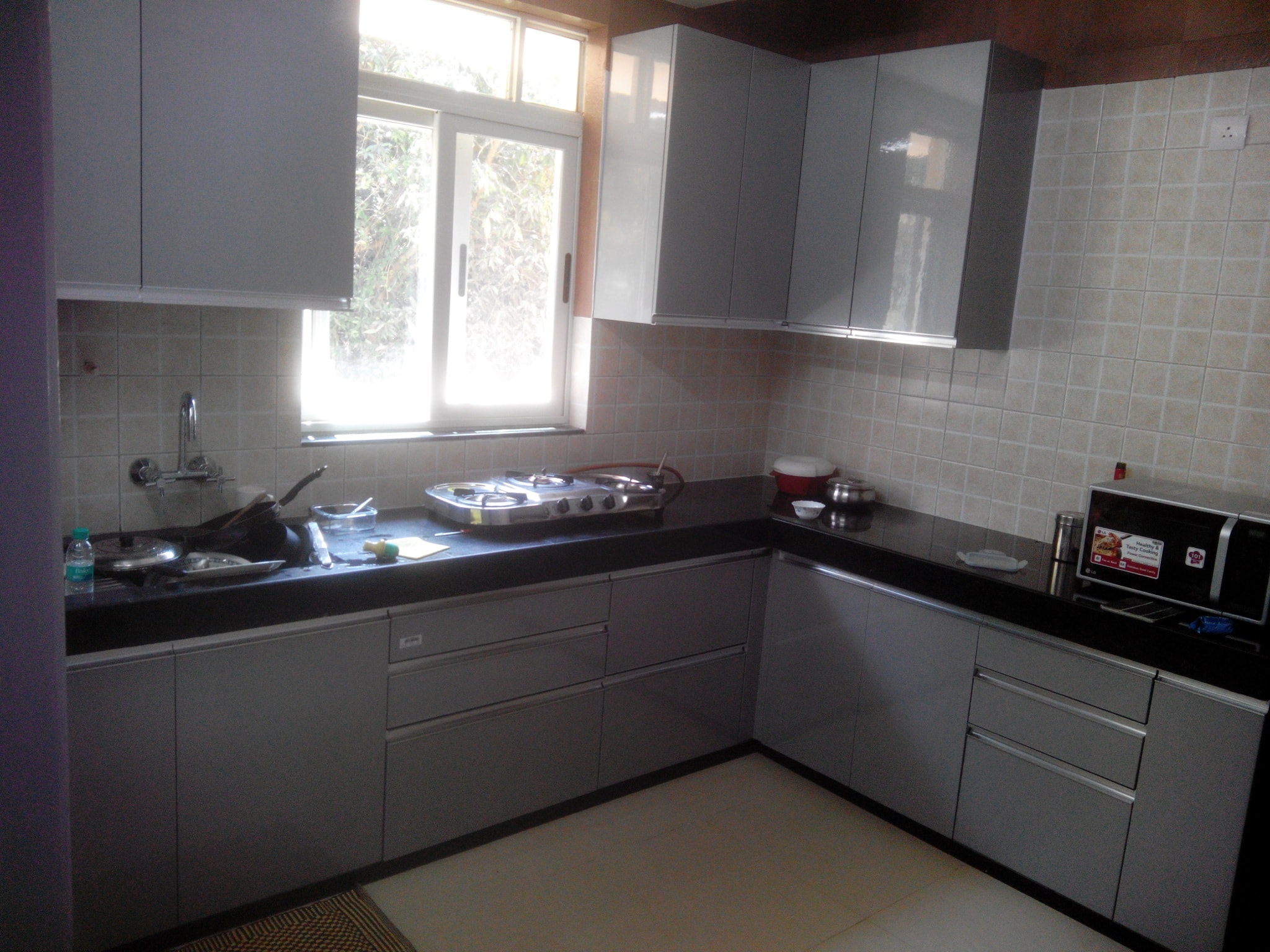 It is a slight modification of a Line Kitchen but gives you extra space for storage and mounting your appliances or kitchen wares. The extended smaller leg of your L-Shaped kitchen is ideal for turning into a small dining mount too. All you need to do is to put a couple of chair, like one or two on the other end of the smaller leg. Or you can install your L-Shaped kitchen using two adjacent walls which will give you extra storage options and lot of free space to work on and experiment with. Just like the Line Kitchen, L-Shaped kitchen too is compact and smart enough to be installed into your fully furnished living room. You can organize a small get together or tea party and attend your guest’s right from your kitchen. It’s all comfortable as well as smart option for medium size rooms.